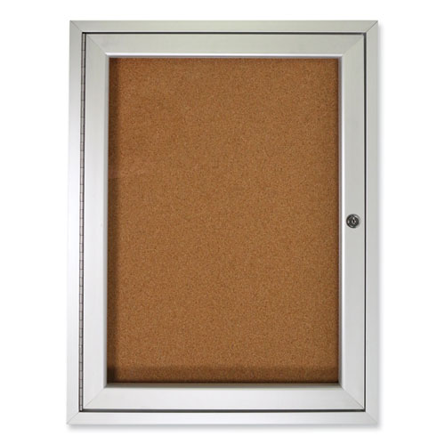 1 Door Enclosed Natural Cork Bulletin Board with Satin Aluminum Frame, 18 x 24, Tan Surface, Ships in 7-10 Business Days