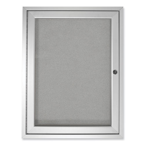 Ghent's Enclosed Vinyl Bulletin Board is the perfect way to display messages, pictures, and important information securely. The message center is made with a vinyl tack surface that hides pin holes and holds up under repeated tacking, providing years of reliable service. When used outside, this vinyl board will not break down or mold, unlike cork enclosed boards. You do not have to worry about damage from weather or humidity as long as you hang the board under an awning or overhang. This 1-door enclosed bulletin board is protected using shatter-proof acrylic panels, full-length door hinges, and locks that are flush with the frame. You can install the board in high-traffic, public areas without worrying about damage or tampering. Hidden corner brackets allow the message center to sit flush against the wall without any visible hardware which adds protection from vandalism. The colored vinyl surface is paired with a satin aluminum frame and includes two keys. Perfect for indoor and outdoor use.