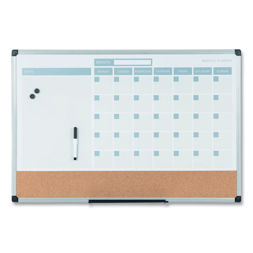 3-in-1 calendar planner, 36 x 24, white surface, silver aluminum frame
