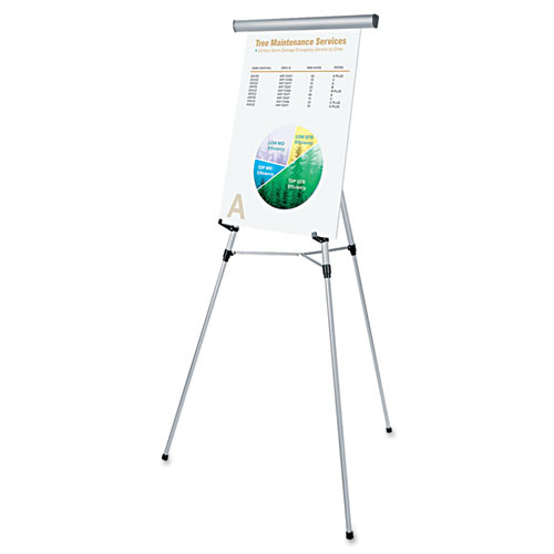 3-Leg Telescoping Easel With Pad Retainer, Adjusts 34" To 64", Aluminum, Silver