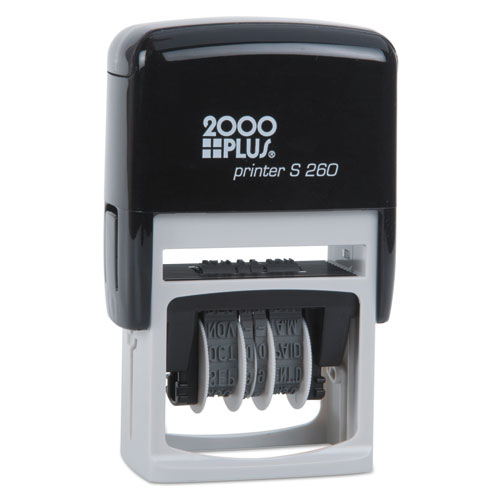 Self-inking message stamp features four interchangeable messages: Scanned, Emailed, Entered and Completed. Two-color pad for message and date. Ink colors: red and blue. Five-year date band. Perfect for office use.