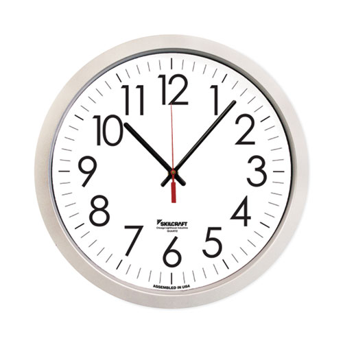 6645016986555 SKILCRAFT Silver Quartz Wall Clock, 14.5" Overall Diameter, 1 AA (sold separately)