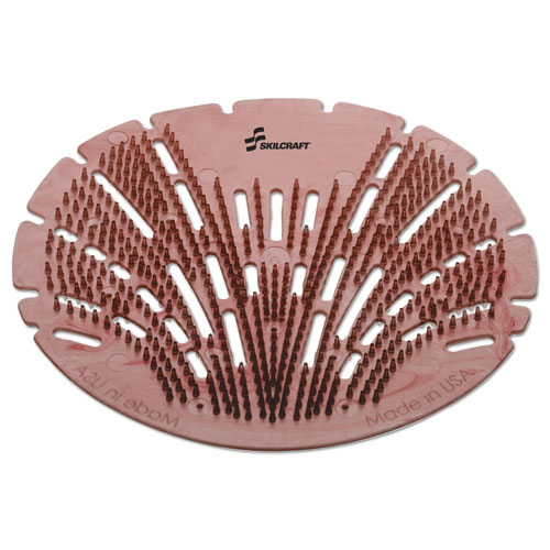 Prevent splashback and cross-contamination in areas outside the restrooms with SKILCRAFT® Pearl 3D Urinal Screens. Contains more fragrance than traditional screens to provide continuous scent for up to 45 days. Flexible screen is much stronger than traditional vinyl urinal screens. Translucent screens keep drains visible while collecting debris to prevent clogs. Safe for use in waterless urinals.