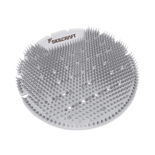 Keep public or commercial restrooms smelling fresh and clean for up to 60 days with SKILCRAFT® Extended Power Urinal Screens. Round polymer-compound screens sit on urinal drains to deodorize with a fresh scent, prevent splash back, and filter debris to prevent clogged drains. 100% recyclable screen is 7.25 x 0.25 thick.
