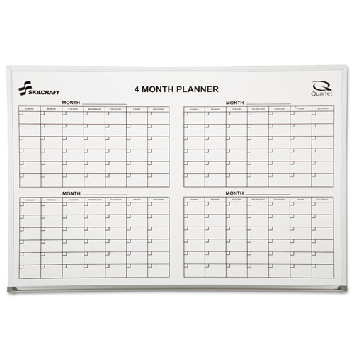 7110015550295 skilcraft quartet cubicle calendar board, four month, 24 x 36, white surface, aluminum frame