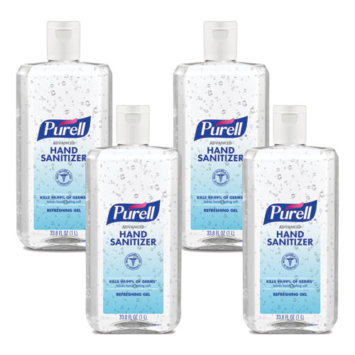 Advanced Hand Sanitizer Refreshing Gel, 1 L Flip Cap Bottle, Clean Scent, 4/Carton