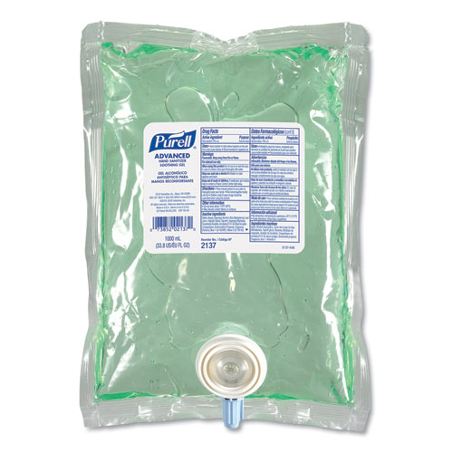 Advanced Hand Sanitizer Soothing Gel NXT Refill, 1,000 mL, Fragrance-Free, 8/Carton