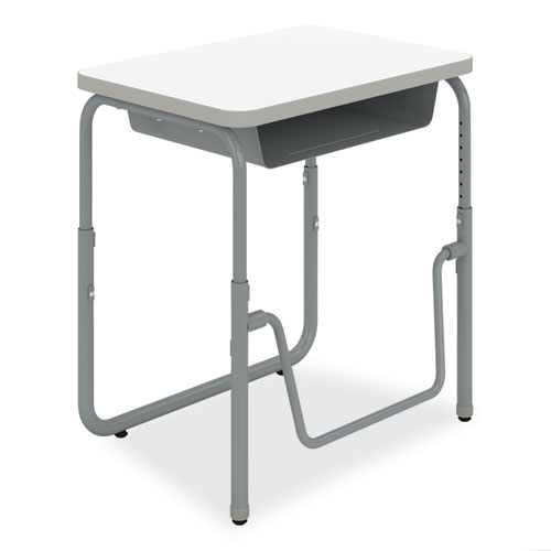 Encourage healthy movement and provide convenient storage with the AlphaBetter 2.0 height-adjustable student desk that features a high-pressure laminate top and under-surface book box. This desk comfortably accommodates students of all sizes as they work or sketch ideas. A pendulum footrest allows students to redirect excess energy and continue to move, even as they sit, providing ergonomic support, increasing comfort, and promoting cardiovascular health. Great for boosting productivity and focus, this student desk has the added benefit of optional casters for better mobility throughout the classroom, and a convenient book cubby right beneath the desktop. Height adjusts accommodating students in 5th grade and up as well as adults at seated and standing heights.