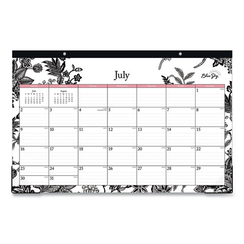 Analeis Academic Year Desk Pad Calendar, Floral Artwork, 17 x 11, White/Black/Pink Sheets, 12-Month (July to June): 2023-2024