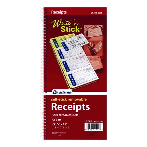 Write 'n Stick Receipt Book, Two-Part Carbonless, 4.75 x 2.75, 4 Forms/Sheet, 200 Forms Total