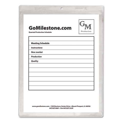 Keep job tickets, work orders, product schedules and inventory cards more secure and protected. Strong, welded vinyl construction provides extra durability. Non-rip seams makes it hold up in even the roughest environments. Punched hole at the top for convenient hanging, making information more easily accessible. Great for two sided document storage since both sides of the holder are clear. Inserts easily slide in and out of holder. Super heavyweight. This product will be cheerfully replaced with one of equal value if defective in materials, manufacturing or packaging at the time of purchase. Except for such replacement, this product is sold without warranty or liability even though defect, damage or loss is caused by negligence or other fault.