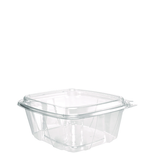 No matter what's inside, these containers keep your food safe, secure and looking good! Designed to prevent tampering without shrink bands or extra wrapping, our containers make sharing food easy. Keep contents fresh and prevent leaks with the secure perimeter seal. The tamper alert hinge has a visible seal that, if broken, makes it obvious the container has been opened. The specialty lid inhibits the ability to lift it from the base without tearing the hinge. Once the seal is broken, the now two-piece container is easy to re-close and continues to be leak-resistant. Make sure your food is the star of the show thanks to the crystal-clear material. Merchandising and delivery is a breeze the sturdy stackable design. They're even great for at-home use. Transport salads, fruits, or desserts to your next picnic, potluck, or bake sale.