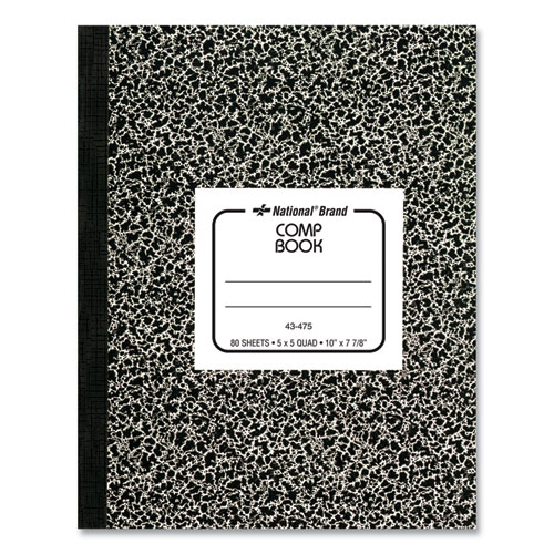 Composition Book, Quadrille Rule (5 sq/in), Black Marble Cover, (80) 10 x 7.88 Sheets