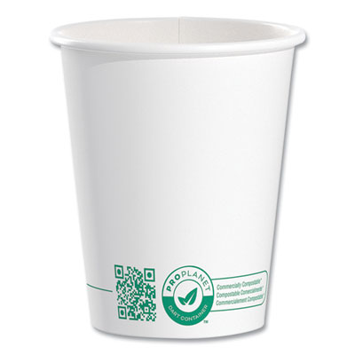 Compostable Paper Hot Cups, ProPlanet Seal, 10 oz, White/Green, 50/Pack