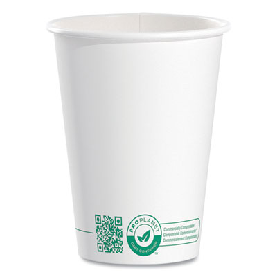 Compostable Paper Hot Cups, ProPlanet Seal, 12 oz, White/Green, 1,000/Carton