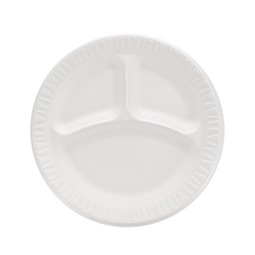 Concorde Foam Plate, 3-Compartment, 9" Dia, White, 125/pack, 4 Packs/carton