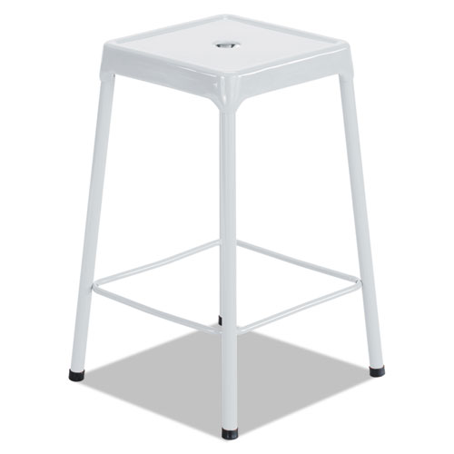 Counter-Height Steel Stool, Backless, Supports Up To 250 Lb, 25" Seat Height, White