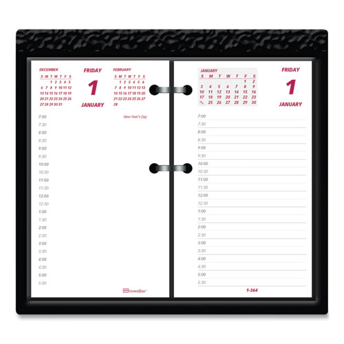 One day per two page spread with half-hour appointments times. Fits most calendar bases up to 6 x 3 1/2 page size, sold separately.