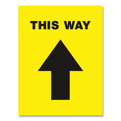 Social Distancing Floor Decals, 8.5 X 11, This Way, Yellow Face, Black Graphics, 5/pack