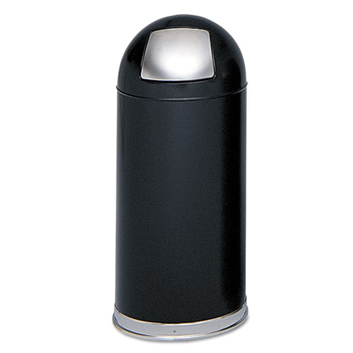 Dome Top Receptacle with Spring-Loaded Door, 15 gal, Steel, Black