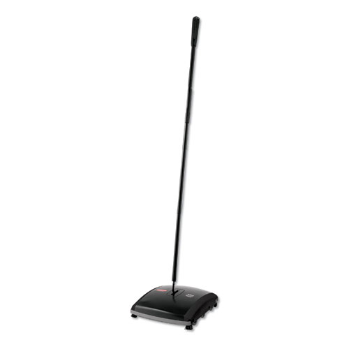 The Rubbermaid Commercial Products Dual Action Mechanical Carpet Sweeper contains 2 types of bristle brush rolls to collect dust, dirt and debris from carpets. This carpet sweeper is made from durable galvanized steel and ABS plastic and works well for bare floors and low-pile carpets. Efficient 7.5-in. sweep path, plus rubber bumper to protect furniture and walls.