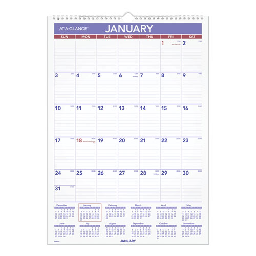 Write-on/wipe-off surface helps manage changes to schedules, events and reminders. One month per page design with ruled blocks helps keep your handwriting aligned and your notes easy to read. Wet erase marker included. Full-year calendar reference; federal holidays highlighted. Wirebound with hanging loop.