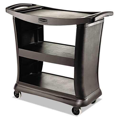 Executive Service Cart, Plastic, 3 Shelves, 300 lb Capacity, 20.33" x 38.9" x 38.9", Black