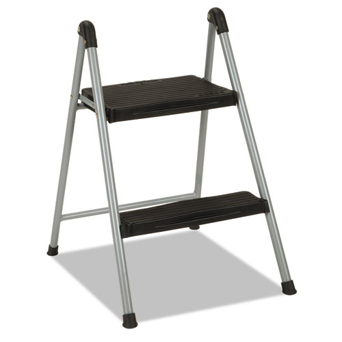 Folding Step Stool, 2-Step, 200 Lb Capacity, 16.9" Working Height, Platinum/black