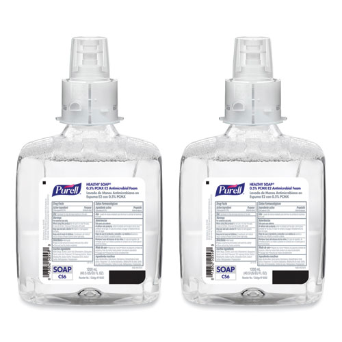 Take care of cleaning hands and killing germs in just one step with PURELL HEALTHY SOAP™ 0.5% PCMX E2 Antimicrobial Foam. This handwashing and sanitizing soap removes fats, oils, and other food processing soils as it eliminates 99.99% of common germs, including the most common foodborne bacterial pathogens. This formulation is fragrance-free and has a rich lather that maintains the skin's natural moisture barrier. The refills are SANITARY SEALED™ to lock out germs and feature a removable pump for easier recycling. The large 1,200 mL refill works with the PURELL® CS6 Touch-Free Soap Dispenser (sold separately).