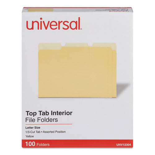 Interior File Folders, 1/3-Cut Tabs: Assorted, Letter Size, 11-pt Stock, Yellow, 100/Box