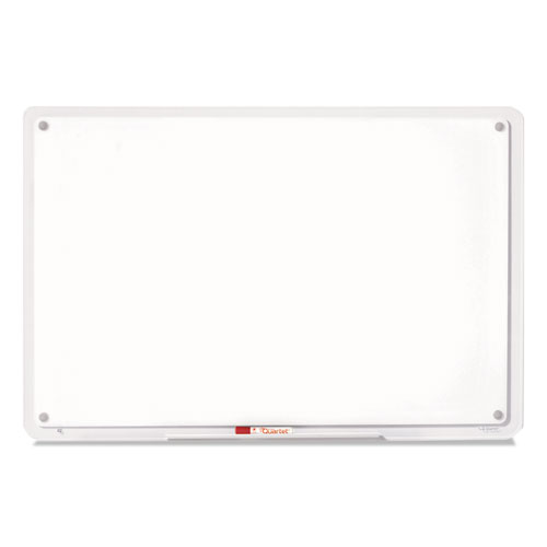 Sleek board with highly durable Total Erase® surface resists staining, ghosting, scratching and denting. Delivers quality performance when collaboration is needed in frequent-use office environments and personal workspaces. High-tech translucent frame extends writing surface from edge-to-edge. Easy-to-clean writing surface requires occasional use of Quartet® cleaning solutions. Lightweight construction and flexible pass-thru mounting system allows horizontal and vertical mounting, even on curved walls. Sophisticated design makes for a seamless fit into any décor. Attached marker tray conveniently stores markers and accessories. Includes one Quartet® dry-erase marker. Available in four sizes for mixing and matching to create the ideal iQ™ collaboration system.