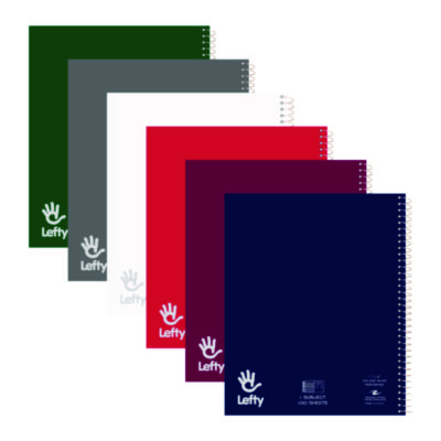 Lefty Notebook, 1-Subject, Medium/College Rule, Randomly Assorted Cover Color, (100) 11 x 8.5 Sheets