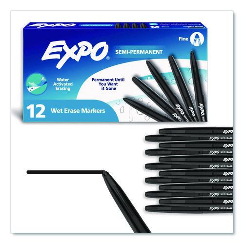 Wet Erase Marker, Fine Bullet Tip, Black, 12/Pack