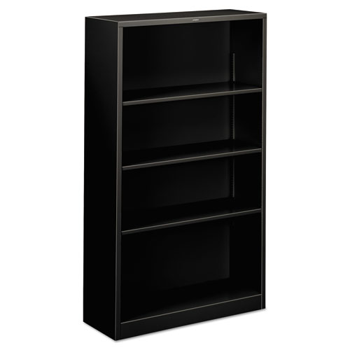 Metal Bookcase, Four-Shelf, 34.5w x 12.63d x 59h, Black