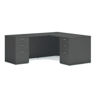 Mod offers any workspace, big or small, straightforward, no-nonsense design, exceptional durability and versatility that stands the test of time. This double pedestal L-station desking solution lets you protect what's important and provides easy access to personal items, office supplies, and more. Cancel cord confusion with handy desktop grommets designed to organized power and data cables.