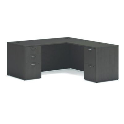 Mod offers any workspace, big or small, straightforward, no-nonsense design, exceptional durability and versatility that stands the test of time. This double pedestal L-station desking solution lets you protect what's important and provides easy access to personal items, office supplies, and more. Cancel cord confusion with handy desktop grommets designed to organized power and data cables.