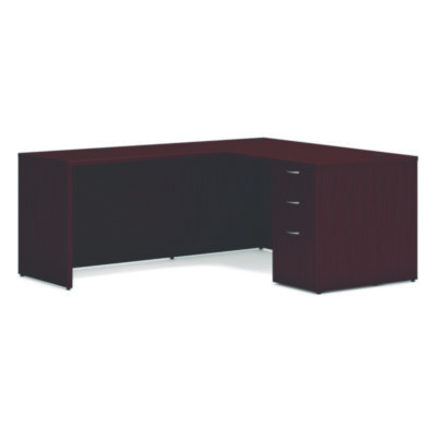 Mod L-Station Single Pedestal Desk Bundle, 60" x 72" x 29", Mahogany, Ships in 7-10 Business Days