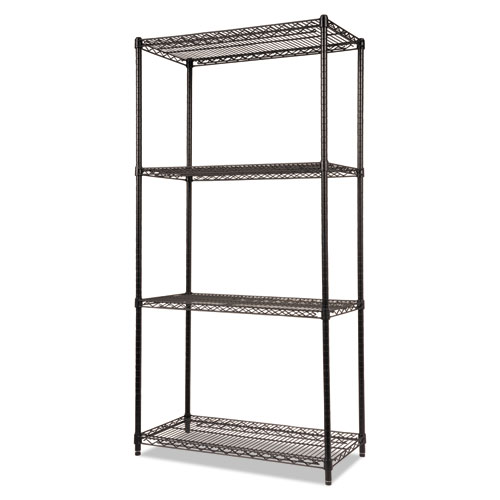 - NSF Certified Industrial Four-Shelf Wire Shelving Kit, 36w x 18d x 72h, Black