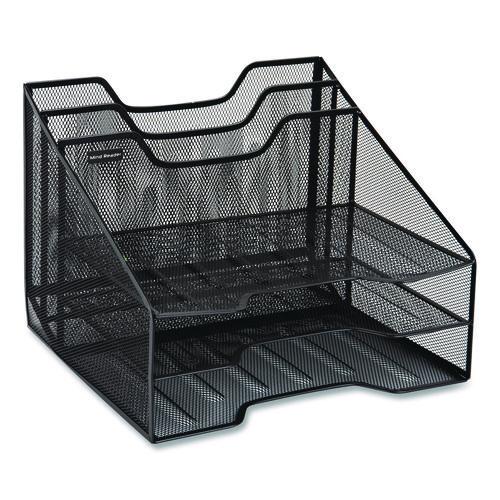 Metal Mesh Vertical File Holder Paper Tray Desktop Organizer, 2-Tier/5-Compartment, Letter Size, 11.25 x 12.5 x 9.5, Black