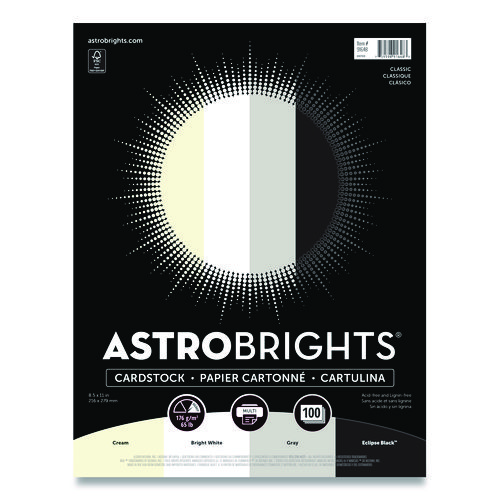 Color Cardstock - "Classic" Assortment, 65 lb Cover Weight, 8.5 x 11, Assorted Classic Colors, 100/Pack