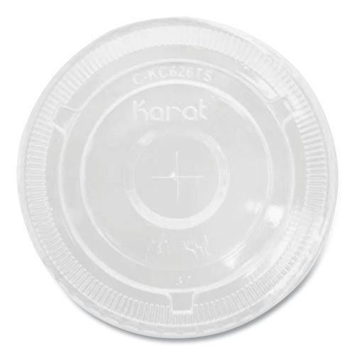 Karat® PET lids are essential in any foodservice operation. They are protected with a double-poly lining both inside and out. Start serving ice-cold fountain drinks, smoothies, milkshakes and more!