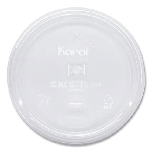 Karat® PET lids are essential in any foodservice operation. They are protected with a double-poly lining both inside and out. Start serving ice-cold fountain drinks, smoothies, milkshakes and more!