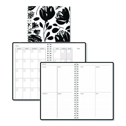 Recycled Non-Dated Monthly/Weekly Planner, Black and White Floral, Black/White Cover, Undated