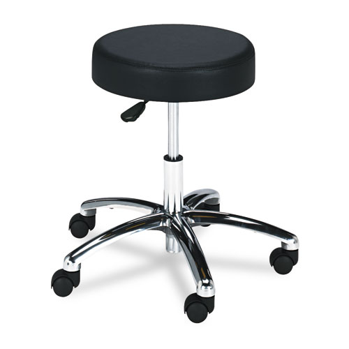 Pneumatic lift adjusts to accommodate different workstation heights. Generously cushioned seat for added comfort. Long-wearing upholstery stands up to everyday wear-and-tear and easy to clean vinyl for easy maintenance. 360° swivel helps to support movement throughout the day, which may help support better circulation and ease pressure points.