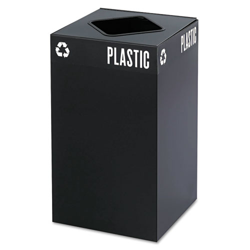 public square recycling receptacles, plastic recycling, 25 gal, steel, black