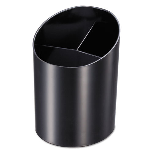 Large capacity cup holds a variety of writing instruments at different levels due to stepped compartment design. Provides easy access to all items.