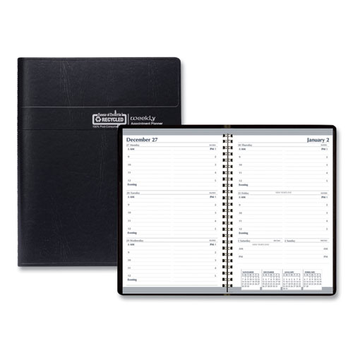 Recycled Weekly Appointment Book, 8 x 5, Black Cover, 12-Month (Jan to Dec): 2024