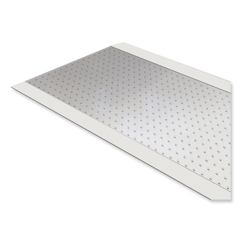 Extend the life of your high traffic areas with an ES Robbins® ribbed vinyl carpet runner. Ideal for areas with repetitive foot traffic, ES Robbins® clear vinyl runner helps shield your carpet from wear and tear. ES Robbins® ribbed vinyl runner is made with a premium vinyl that is GREENGUARD Gold Certified for low chemical emissions to promote a healthier workspace. Cleated underside designed for use on carpeted surfaces only, do not use on hard floors.