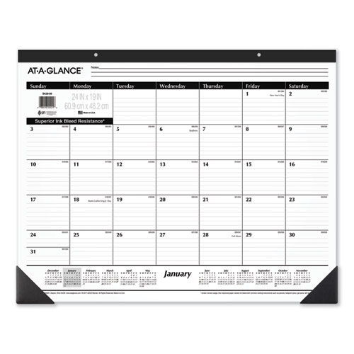 - Ruled Desk Pad, 24 x 19, White Sheets, Black Binding, Black Corners, 12-Month (Jan to Dec): 2024