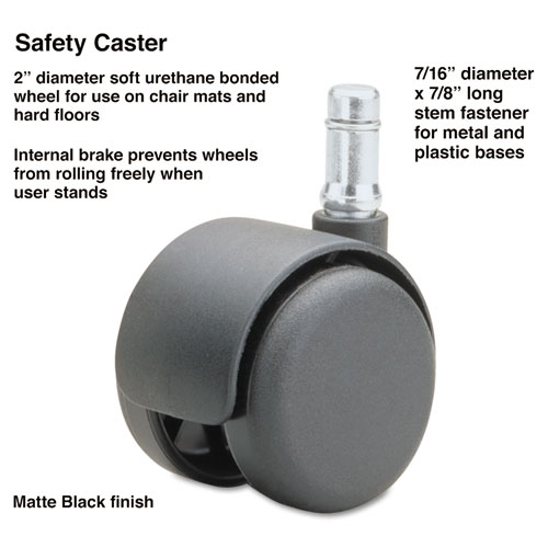 Safety Casters, Standard Neck, Grip Ring Type B Stem, 2" Soft Polyurethane Wheel, Matte Black, 5/Set